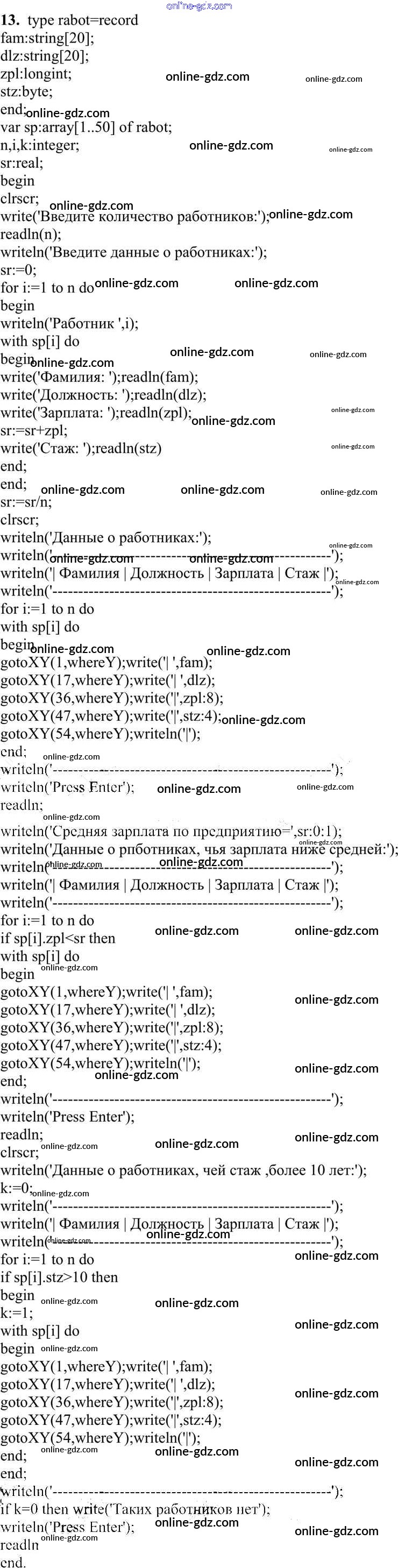 Готовые домашние задания по Информатике за 10 класс Учебник Семакин, Хеннер Базовый уровень 2017 - Работа 3.9. Программирование обработки записей Практические работы к главе 3 «Программирование обработки информации» 13