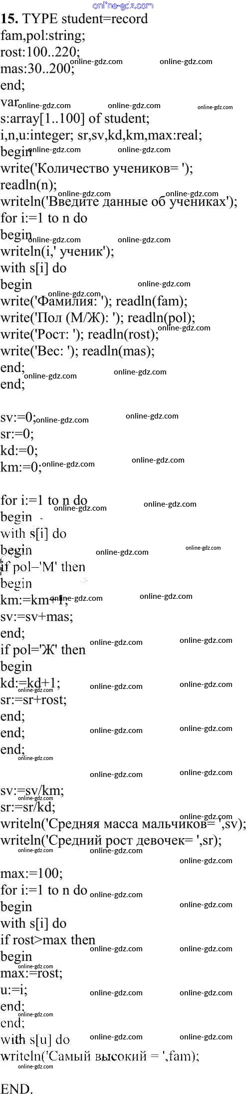 Готовые домашние задания по Информатике за 10 класс Учебник Семакин, Хеннер Базовый уровень 2017 - Работа 3.9. Программирование обработки записей Практические работы к главе 3 «Программирование обработки информации» 15