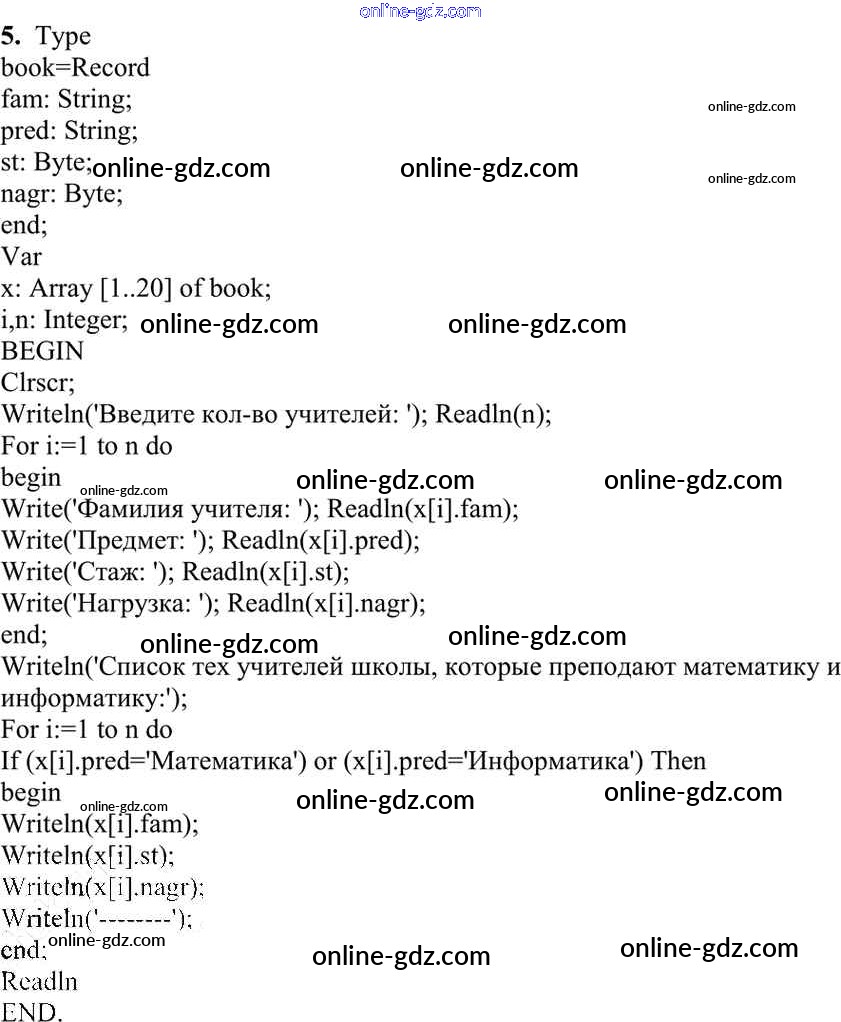 Готовые домашние задания по Информатике за 10 класс Учебник Семакин, Хеннер Базовый уровень 2017 - Работа 3.9. Программирование обработки записей Практические работы к главе 3 «Программирование обработки информации» 5