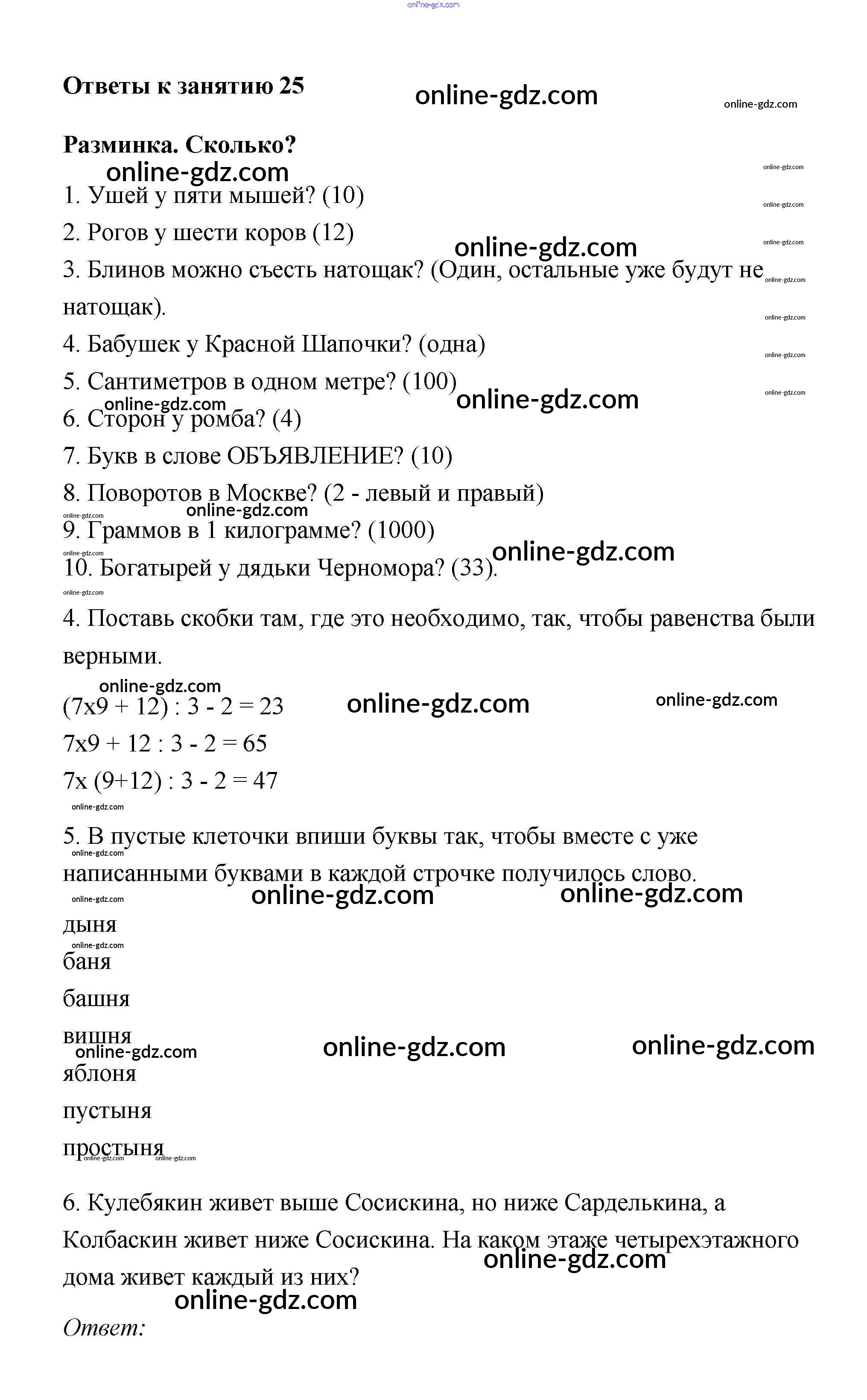 Готовые домашние задания по Информатике за 3 класс Рабочая тетрадь Холодова Юным умникам и умницам 2017 - Уроки 25