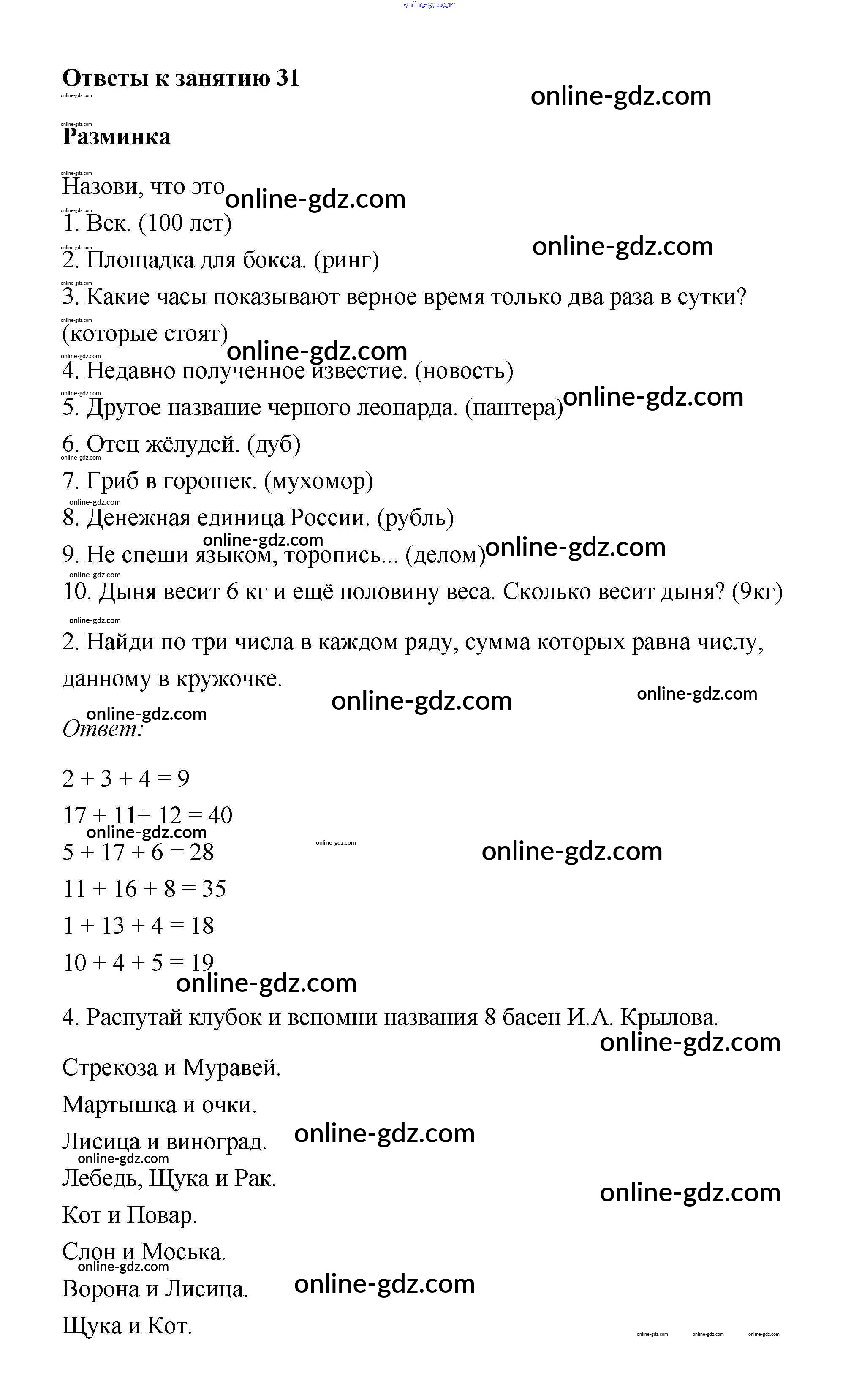 Готовые домашние задания по Информатике за 3 класс Рабочая тетрадь Холодова Юным умникам и умницам 2017 - Уроки 31