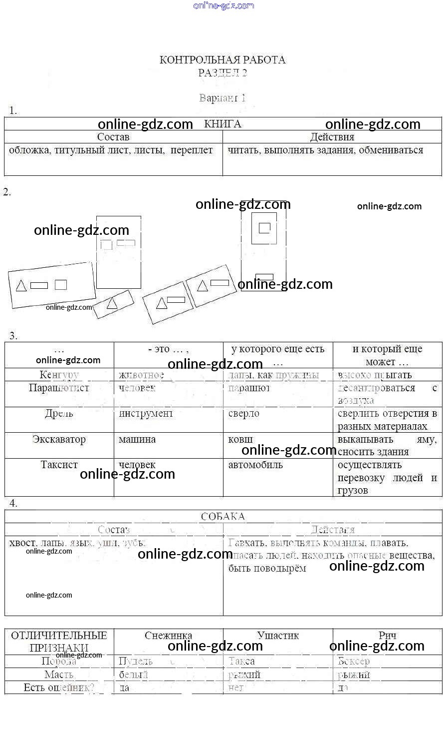 Готовые домашние задания по Информатике за 4 класс Учебник Горячев, Горина Школа 2100 2010 - Контрольная работа 2 Раздел 2 Вариант 1