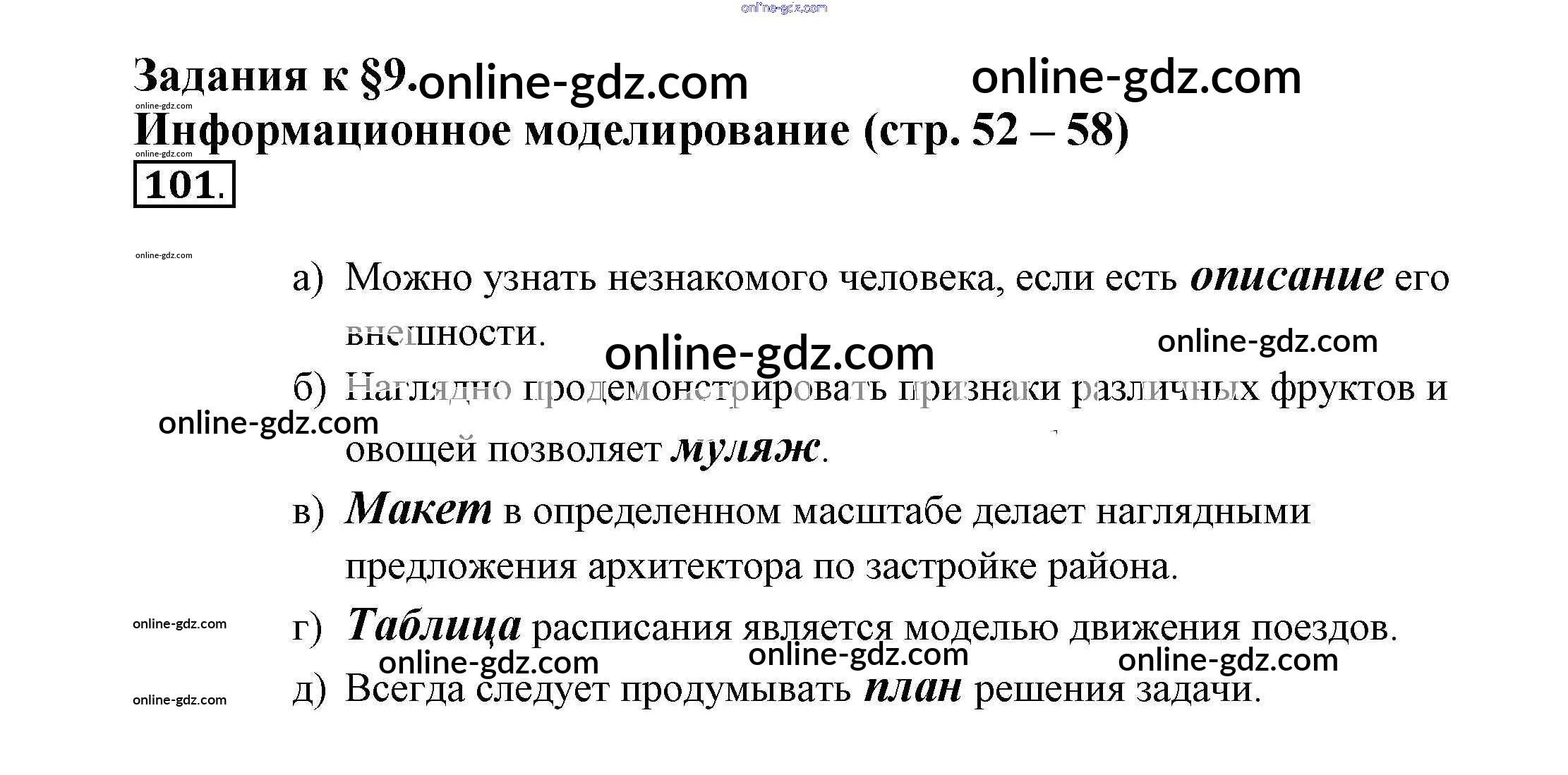 Готовые домашние задания по Информатике за 6 класс Рабочая тетрадь Босова 2017 - Задания 101