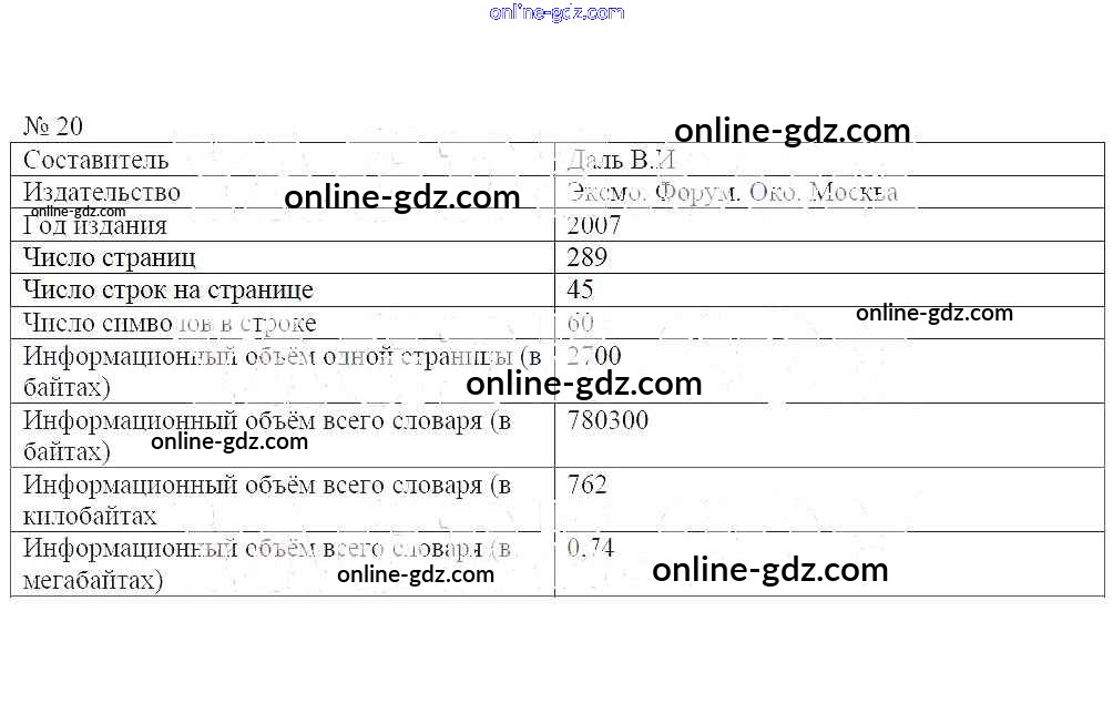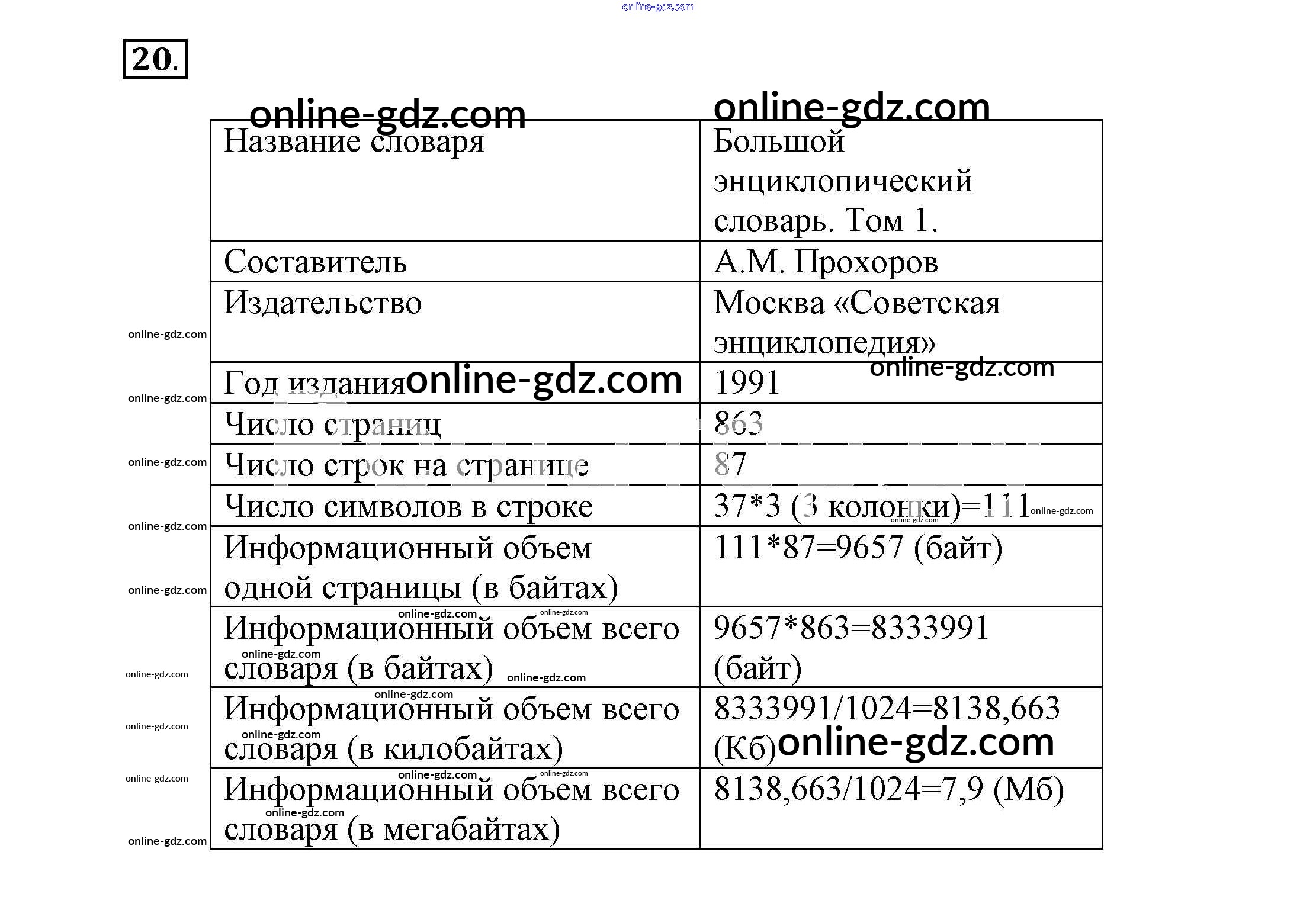 Готовые домашние задания по Информатике за 6 класс Рабочая тетрадь Босова 2017 - Задания 20