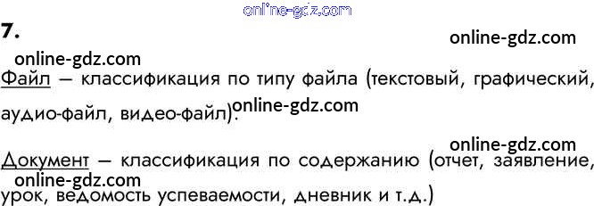 Готовые домашние задания по Информатике за 6 класс Учебник Босова, Босова 2016 - §4. Разновидности объектов и их классификация 7