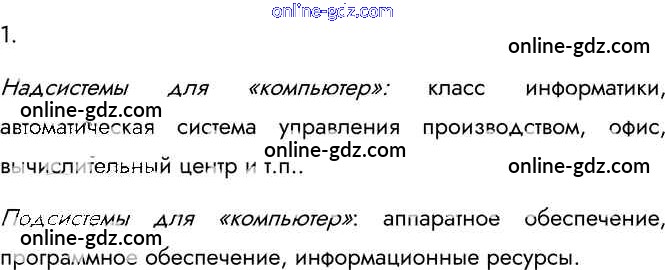 Готовые домашние задания по Информатике за 6 класс Учебник Босова, Босова 2016 - §6. Персональный компьютер как система 1
