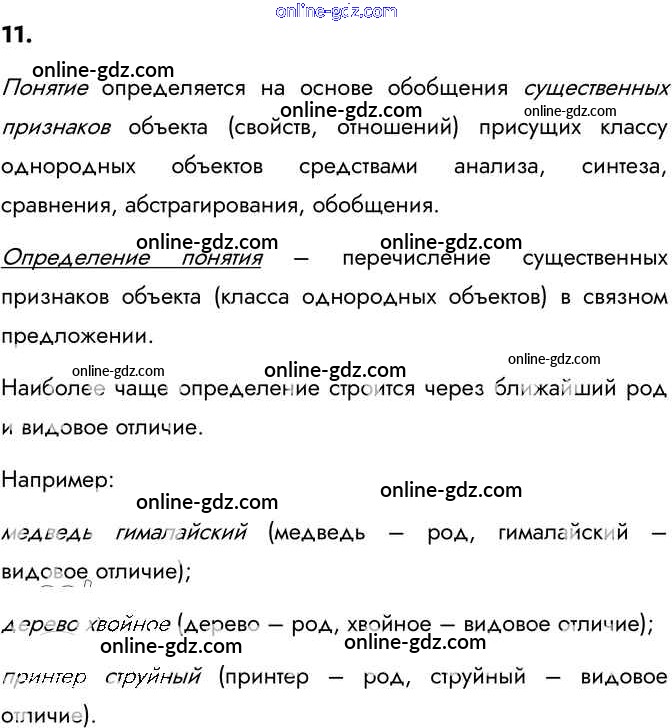 Готовые домашние задания по Информатике за 6 класс Учебник Босова, Босова 2016 - §8. Понятие как форма мышления 11