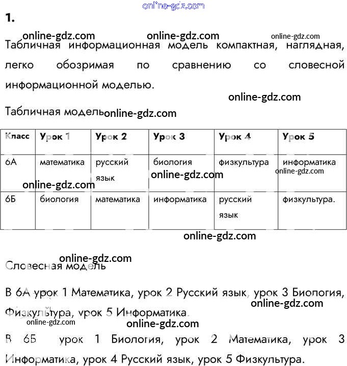 Готовые домашние задания по Информатике за 6 класс Учебник Босова, Босова 2016 - §11. Табличные информационные модели 1