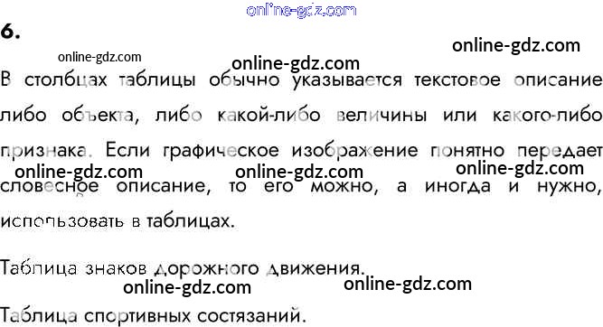 Готовые домашние задания по Информатике за 6 класс Учебник Босова, Босова 2016 - §11. Табличные информационные модели 6