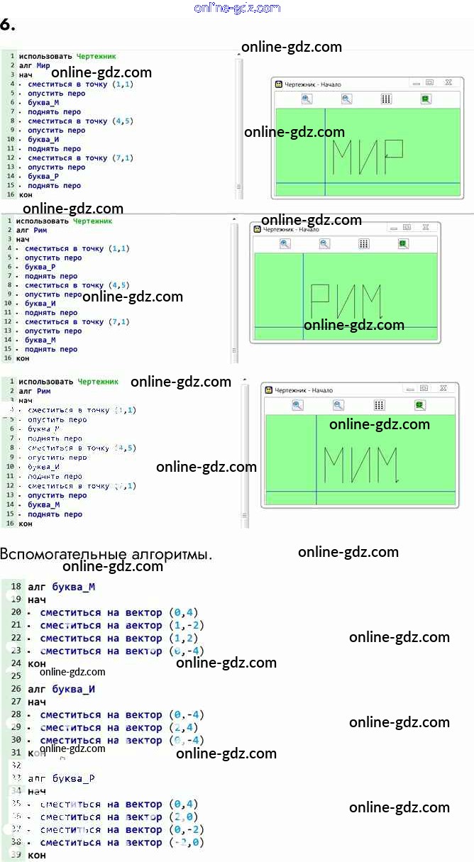 Готовые домашние задания по Информатике за 6 класс Учебник Босова, Босова 2016 - §18. Управление исполнителем Чертёжник 6