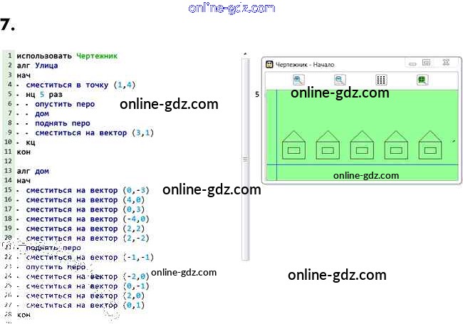 Готовые домашние задания по Информатике за 6 класс Учебник Босова, Босова 2016 - §18. Управление исполнителем Чертёжник 7
