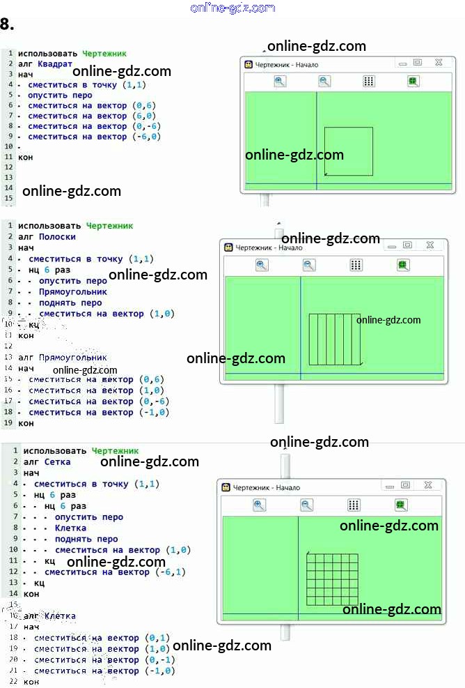Готовые домашние задания по Информатике за 6 класс Учебник Босова, Босова 2016 - §18. Управление исполнителем Чертёжник 8