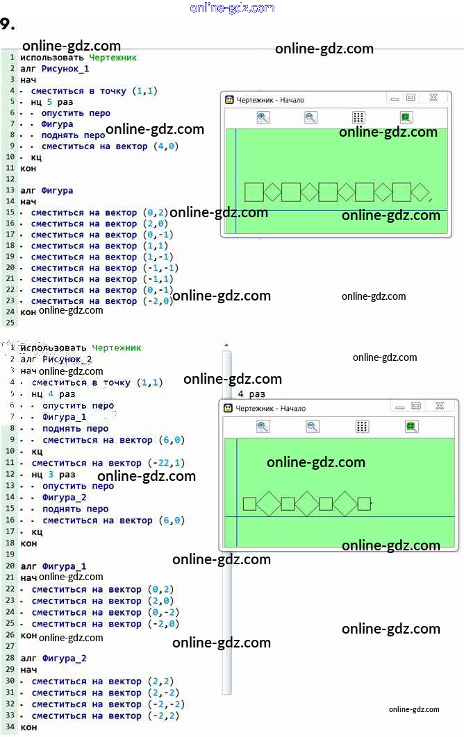 Готовые домашние задания по Информатике за 6 класс Учебник Босова, Босова 2016 - §18. Управление исполнителем Чертёжник 9