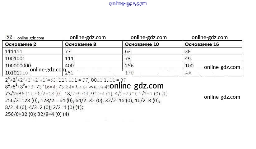 Готовые домашние задания по Информатике за 8 класс Рабочая тетрадь Босова 2017 - Задания 52