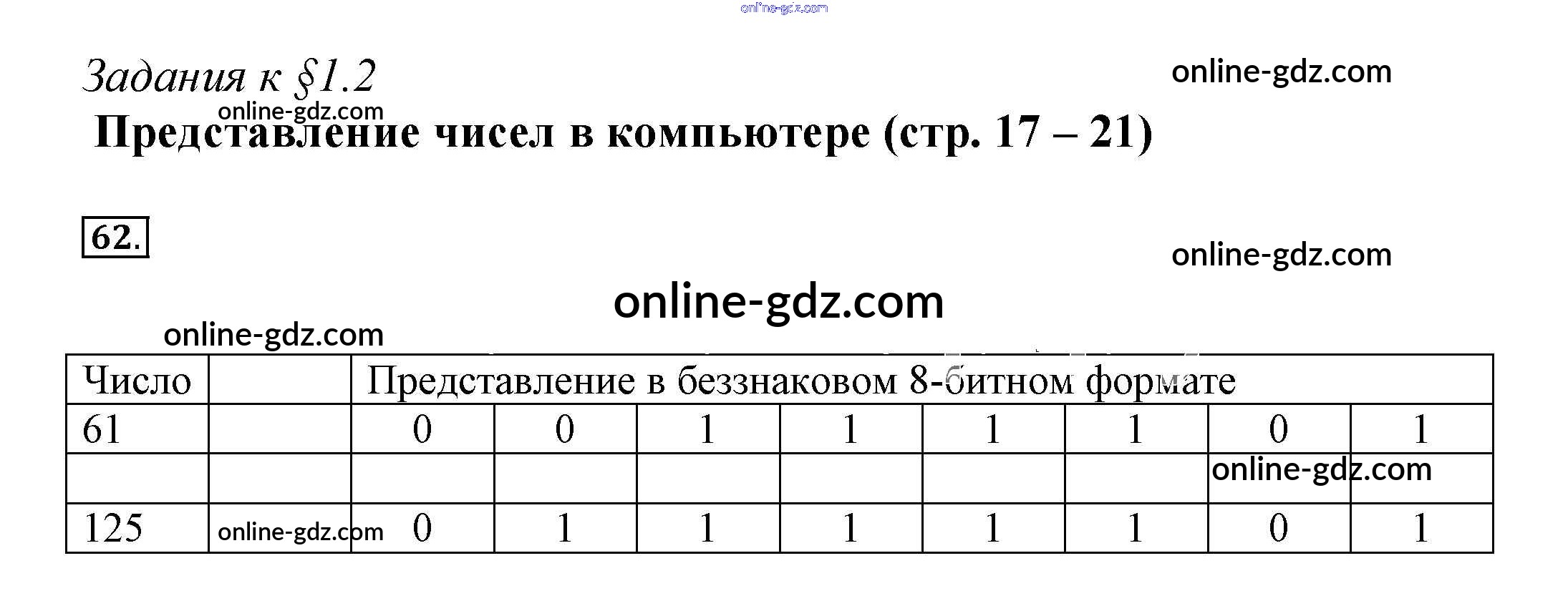 Готовые домашние задания по Информатике за 8 класс Рабочая тетрадь Босова 2017 - Задания 62