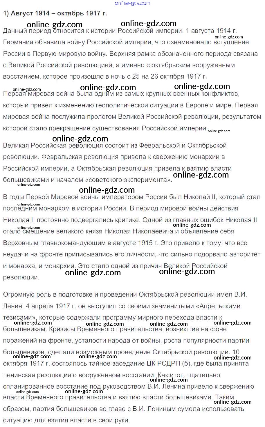 Готовые домашние задания по Истории за 10 класс Контрольные работы Артасов УМК 2017 - Творческие задания 1