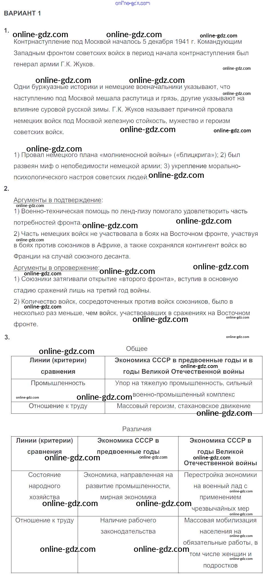 Готовые домашние задания по Истории за 10 класс Контрольные работы Артасов УМК 2017 - КР №2 (варианты) Глава 3 1