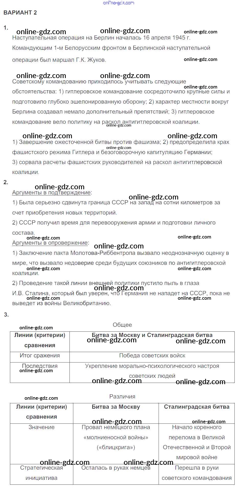 Готовые домашние задания по Истории за 10 класс Контрольные работы Артасов УМК 2017 - КР №2 (варианты) Глава 3 2