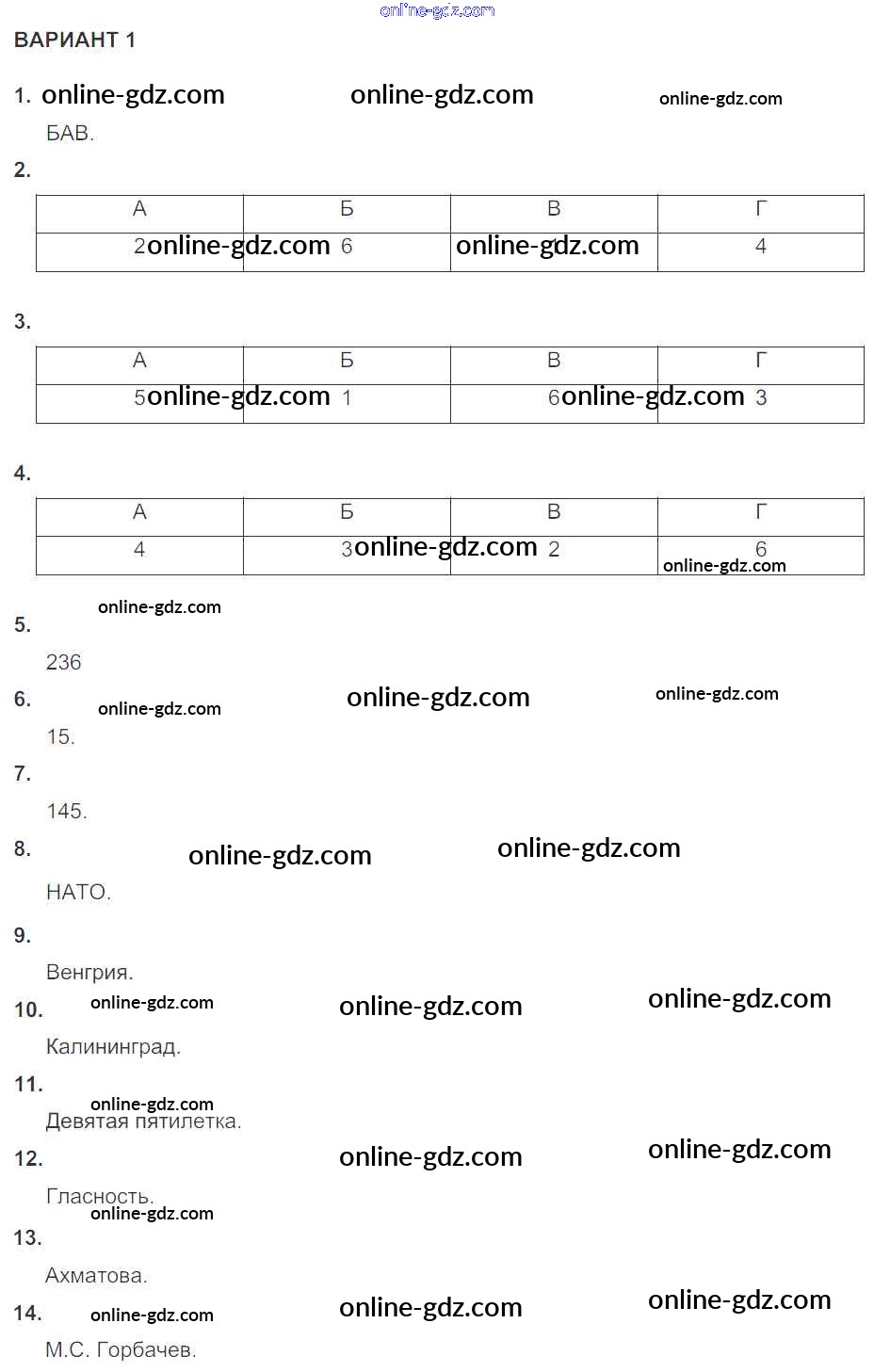 Готовые домашние задания по Истории за 10 класс Контрольные работы Артасов УМК 2017 - КР №1 (варианты) Глава 4 1