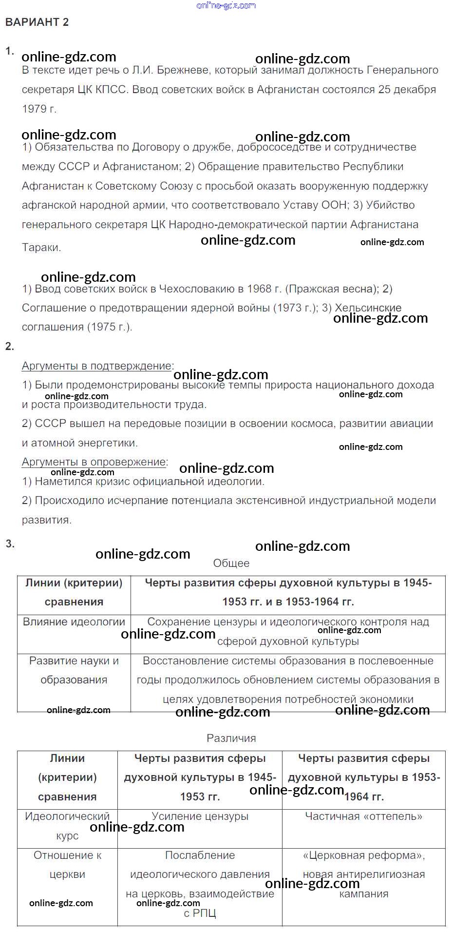 Готовые домашние задания по Истории за 10 класс Контрольные работы Артасов УМК 2017 - КР №2 (варианты) Глава 4 2