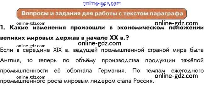 Готовые домашние задания по Истории за 10 класс Учебник Горинов, Данилов 2016 - Вопросы и задания для работы с текстом параграфа §1. Россия и мир накануне Первой мировой войны 1