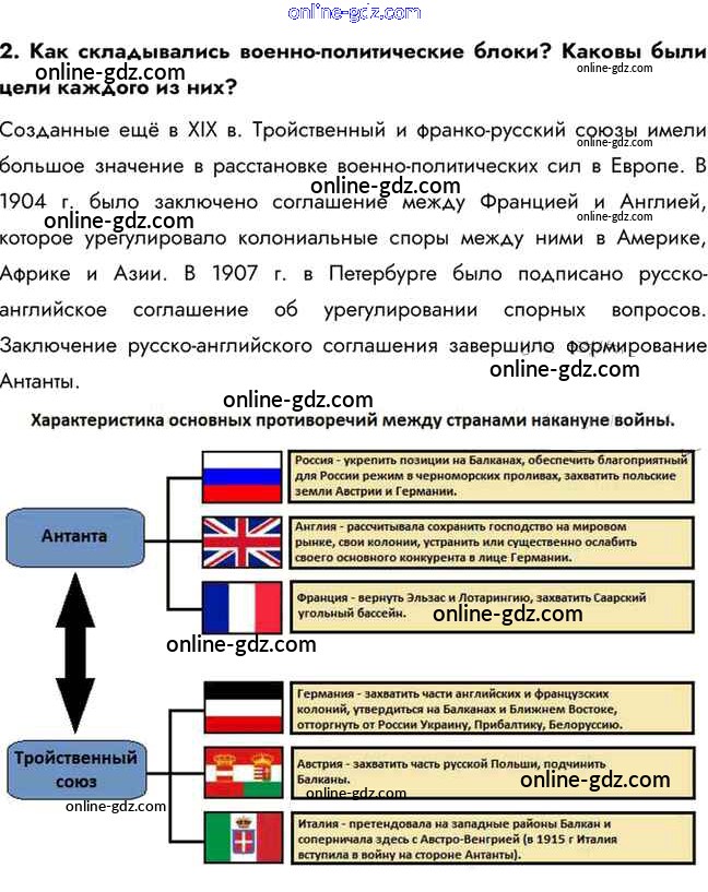 Готовые домашние задания по Истории за 10 класс Учебник Горинов, Данилов 2016 - Вопросы и задания для работы с текстом параграфа §1. Россия и мир накануне Первой мировой войны 2