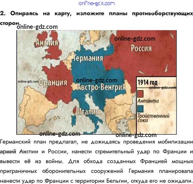 Готовые домашние задания по Истории за 10 класс Учебник Горинов, Данилов 2016 - Работаем с картой §1. Россия и мир накануне Первой мировой войны 2