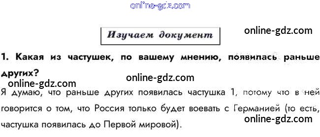 Готовые домашние задания по Истории за 10 класс Учебник Горинов, Данилов 2016 - Изучаем документ §2. Российская империя в Первой мировой войне 1