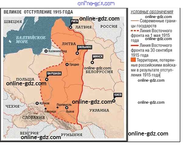 Готовые домашние задания по Истории за 10 класс Учебник Горинов, Данилов 2016 - Работаем с картой §2. Российская империя в Первой мировой войне 2