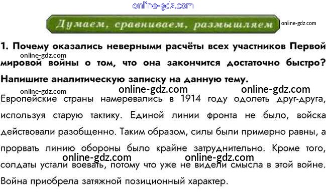 Готовые домашние задания по Истории за 10 класс Учебник Горинов, Данилов 2016 - Думаем, сравниваем, размышляем §2. Российская империя в Первой мировой войне 1