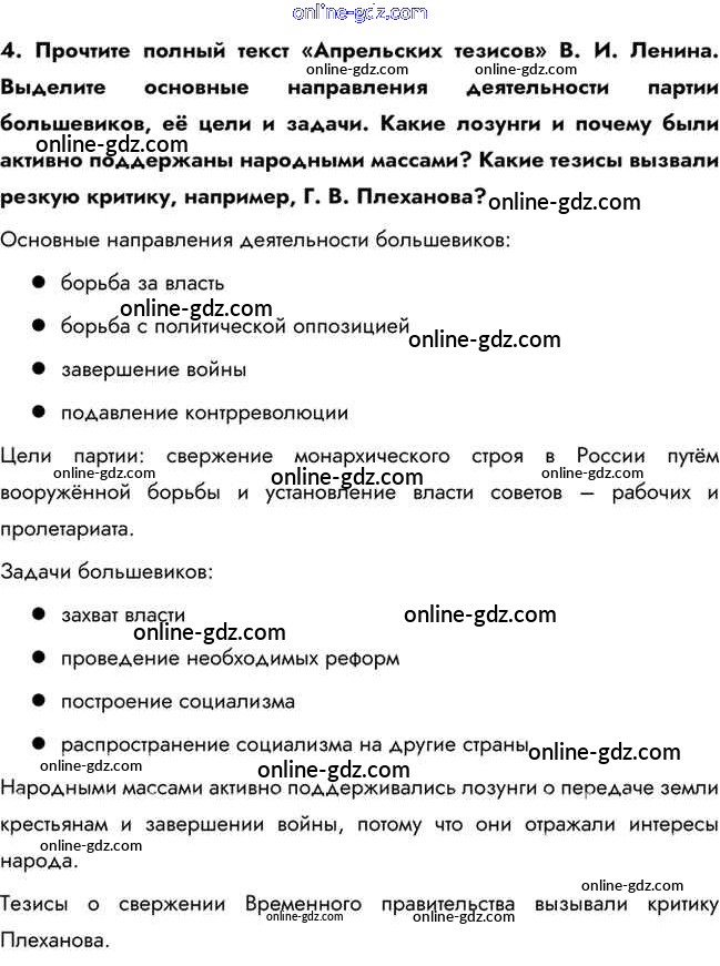 Готовые домашние задания по Истории за 10 класс Учебник Горинов, Данилов 2016 - Думаем, сравниваем, размышляем §3. Великая российская революция: Февраль 1917 г. 4