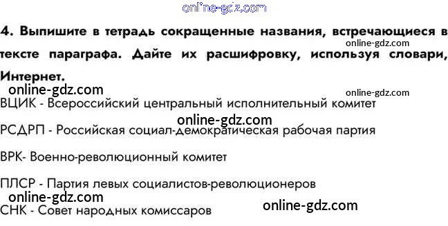 Готовые домашние задания по Истории за 10 класс Учебник Горинов, Данилов 2016 - Вопросы и задания для работы с текстом параграфа §4. Великая российская революция: Октябрь 1917 г. 4