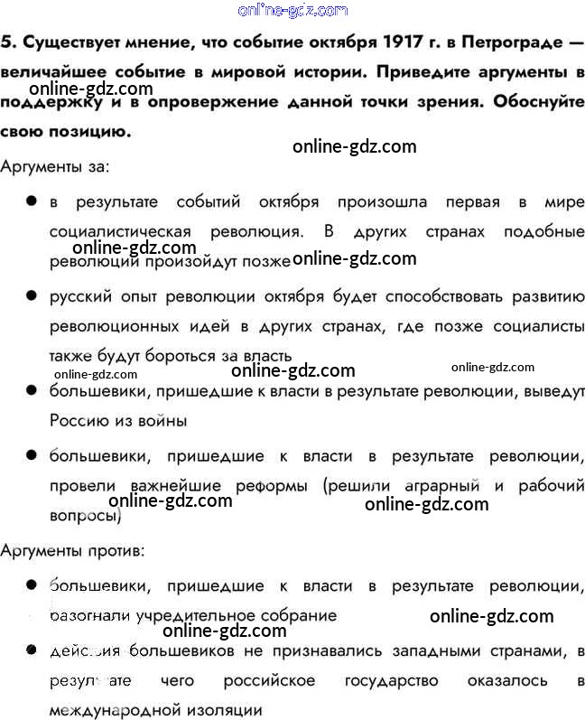 Готовые домашние задания по Истории за 10 класс Учебник Горинов, Данилов 2016 - Думаем, сравниваем, размышляем §4. Великая российская революция: Октябрь 1917 г. 5