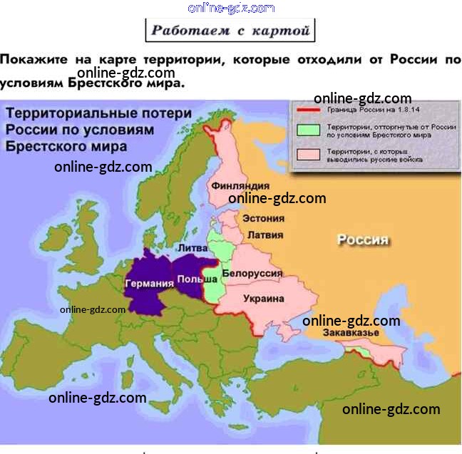 Готовые домашние задания по Истории за 10 класс Учебник Горинов, Данилов 2016 - Работаем с картой §5. Первые революционные преобразования большевиков 1