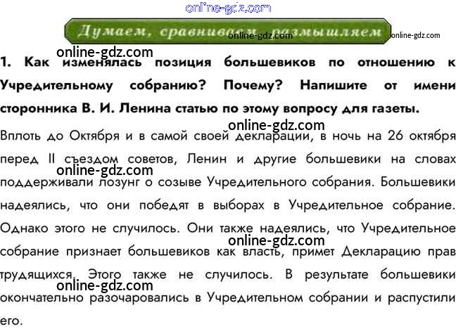 Готовые домашние задания по Истории за 10 класс Учебник Горинов, Данилов 2016 - Думаем, сравниваем, размышляем §5. Первые революционные преобразования большевиков 1