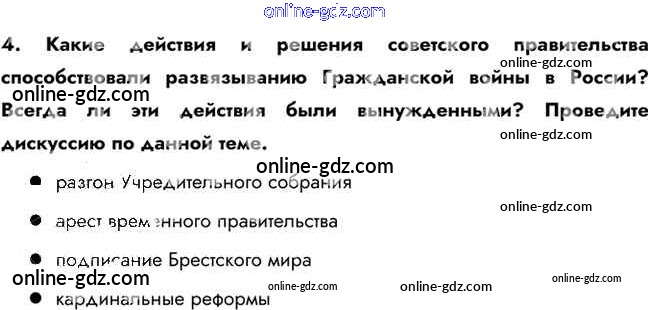 Готовые домашние задания по Истории за 10 класс Учебник Горинов, Данилов 2016 - Думаем, сравниваем, размышляем §5. Первые революционные преобразования большевиков 4