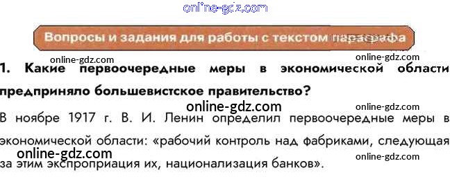 Готовые домашние задания по Истории за 10 класс Учебник Горинов, Данилов 2016 - Вопросы и задания для работы с текстом параграфа §6. Экономическая политика советской власти. Военный коммунизм 1