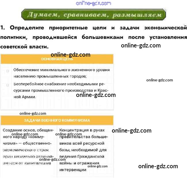 Готовые домашние задания по Истории за 10 класс Учебник Горинов, Данилов 2016 - Думаем, сравниваем, размышляем §6. Экономическая политика советской власти. Военный коммунизм 1
