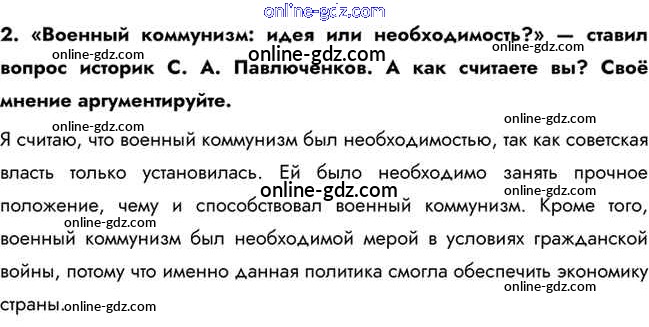 Готовые домашние задания по Истории за 10 класс Учебник Горинов, Данилов 2016 - Думаем, сравниваем, размышляем §6. Экономическая политика советской власти. Военный коммунизм 2