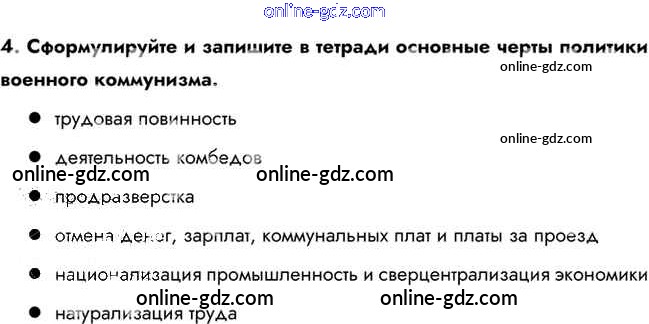 Готовые домашние задания по Истории за 10 класс Учебник Горинов, Данилов 2016 - Думаем, сравниваем, размышляем §6. Экономическая политика советской власти. Военный коммунизм 4