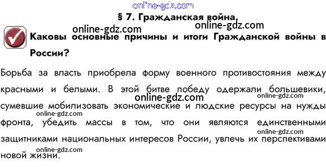 Готовые домашние задания по Истории за 10 класс Учебник Горинов, Данилов 2016 - Вопрос в начале параграфа §7. Гражданская война 1