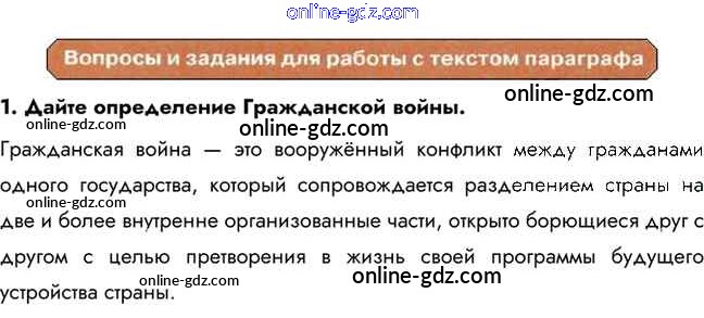 Готовые домашние задания по Истории за 10 класс Учебник Горинов, Данилов 2016 - Вопросы и задания для работы с текстом параграфа §7. Гражданская война 1