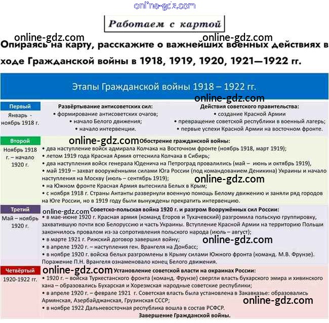 Готовые домашние задания по Истории за 10 класс Учебник Горинов, Данилов 2016 - Работаем с картой §7. Гражданская война 1