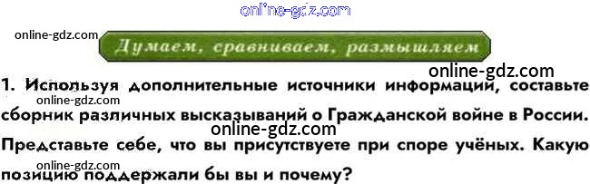 Готовые домашние задания по Истории за 10 класс Учебник Горинов, Данилов 2016 - Думаем, сравниваем, размышляем §7. Гражданская война 1