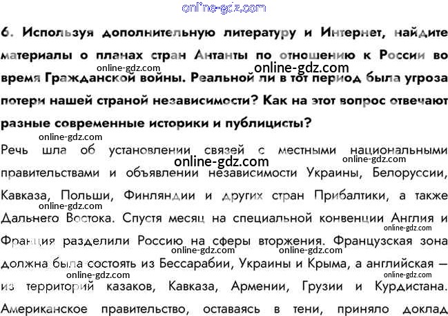 Готовые домашние задания по Истории за 10 класс Учебник Горинов, Данилов 2016 - Думаем, сравниваем, размышляем §7. Гражданская война 6