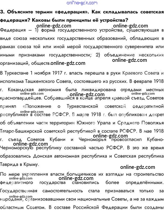 Готовые домашние задания по Истории за 10 класс Учебник Горинов, Данилов 2016 - Вопросы и задания для работы с текстом параграфа Революция и Гражданская война на национальных окраинах. 3