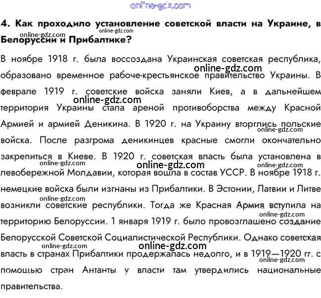 Готовые домашние задания по Истории за 10 класс Учебник Горинов, Данилов 2016 - Вопросы и задания для работы с текстом параграфа Революция и Гражданская война на национальных окраинах. 4