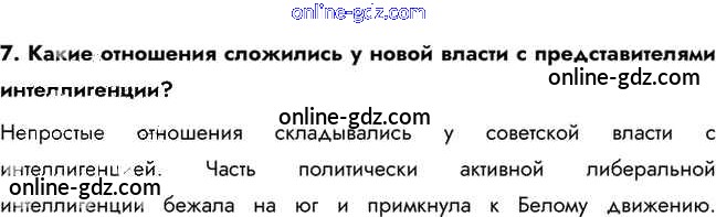 Готовые домашние задания по Истории за 10 класс Учебник Горинов, Данилов 2016 - Вопросы и задания для работы с текстом параграфа §8. Идеология и культура периода Гражданской войны 7