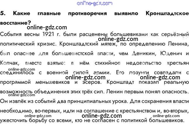 Готовые домашние задания по Истории за 10 класс Учебник Горинов, Данилов 2016 - Вопросы и задания для работы с текстом параграфа §9. Экономический и политический кризис начала 1920-х гг. Переход к нэпу 5