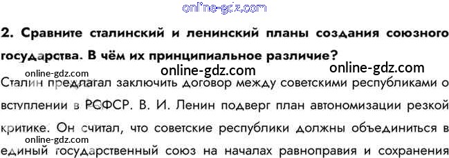 Готовые домашние задания по Истории за 10 класс Учебник Горинов, Данилов 2016 - Вопросы и задания для работы с текстом параграфа §11. Образование СССР. Национальная политика в 1920-е гг. 2